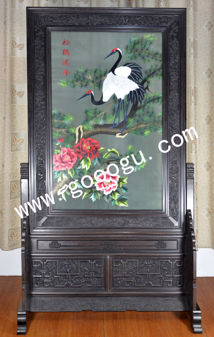 蘇繡玄關(guān)屏風 松鶴延年 手工刺繡 雞翅木 祝壽禮品 送長者