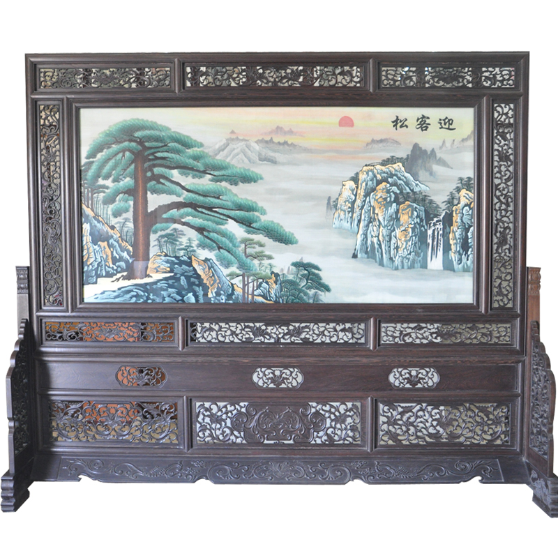 風景玄關(guān)屏風 雙面繡酒店隔斷 迎客松 手工刺繡 包物流精品推薦